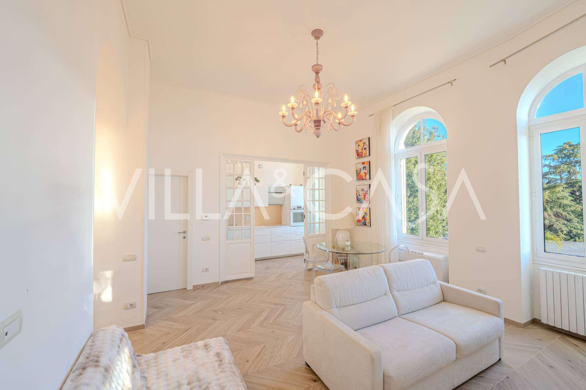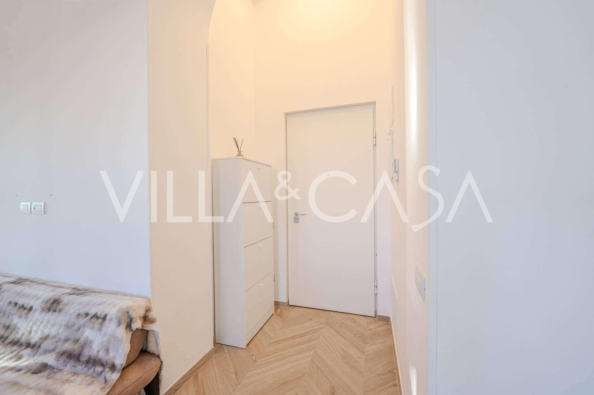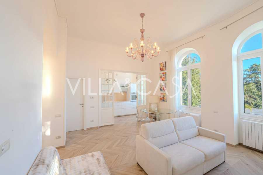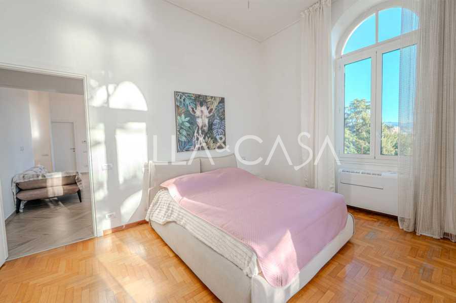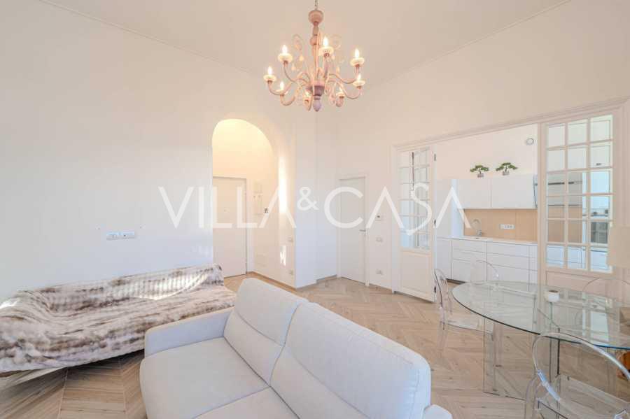 Sanremóban kiadó egy 73 m2-es, két szobás lakás tengerre néző kilátással. A lakás a második emeleten található lifttel, és tartalmaz egy nappalit, egy erkélyes hálószobát, konyhát és fürdőszobát. A lakás kifogástalan állapotban van: új ablakok, légkondicionáló, parketta és önálló fűtés. Teljesen bútorozott. Az ár tartalmazza a parkolóhelyet a garázsban. A komplexum zárt és csendes, medencével, kerttel, pihenőrésszel és grillezővel. A városközpont és a tenger mindössze 7 perc sétára található.