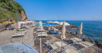 A vendégek számára egy körülbelül 25 méter hosszú, fűtött tengervizes fedett medence áll rendelkezésre. A szálloda magán stranddal is rendelkezik, közvetlen kijárattal a tengerre, amely magában foglal egy tengervizes medencét, napozóágyakkal és napernyőkkel felszerelt zónát, valamint egy kavicsos strandot, amely 100–110 fő befogadására alkalmas, mind a szálloda vendégei, mind a külső látogatók számára. A nyári szezonban könnyű harapnivalókkal rendelkező snack bár, valamint szépség- és thalassoterápiás központ nyílik.