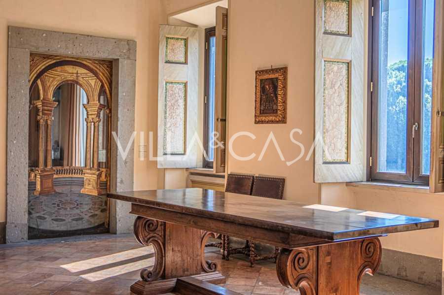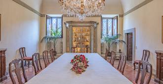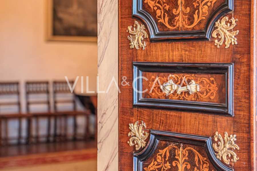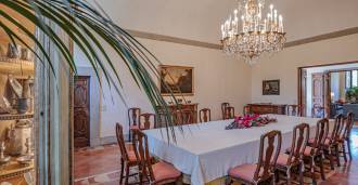 Az első emeleten tágas fogadószalonok, dolgozószoba, hálószoba, három fürdőszoba, elegáns étkező és egy nagy konyha található, amely az alsó szintre folytatódik, ahol egy bankett terem található, amely tökéletes ünnepi rendezvényekhez.