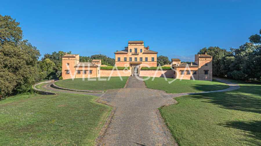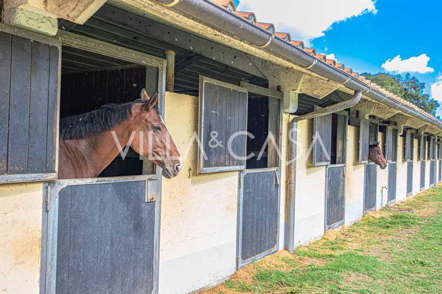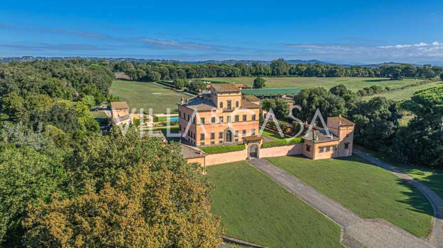 A kastély mindössze húsz kilométerre északra található Rómától, és harminc hektár gondozott rét és ősi erdő veszi körül, amelyek a teljes elvonulás és a természettel való harmónia légkörét teremtik meg. Itt született a legendás versenyló, Ribot. A lovas létesítmények a legjobb nemzetközi szabványok szerint vannak felszerelve: két istálló huszonhárom és huszonöt boxszal, nyeregszobákkal, lovak ápolására szolgáló területekkel és kényelmes személyzeti apartmanokkal. A komplexumban fedett lovarda, fedett körhinta, fedett manézs és kiterjedt legelők találhatók a lótenyésztéshez, amelyek ideálisak edzésekhez és versenyekhez. A kastély egyike Európa legelismertebb golfklubjainak, és saját helikopter-leszállóval rendelkezik. A birtok területén található ősi etruszk barlangok különleges varázst és történelmi értéket adnak a helyszínnek.