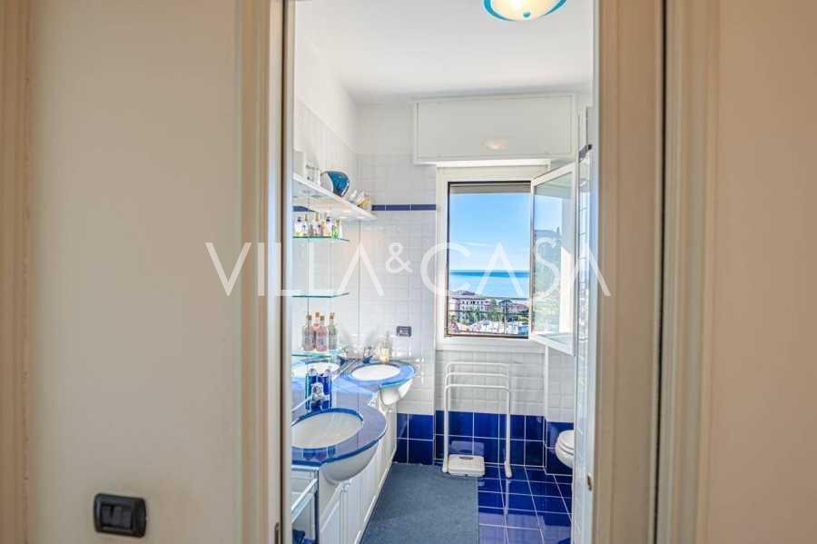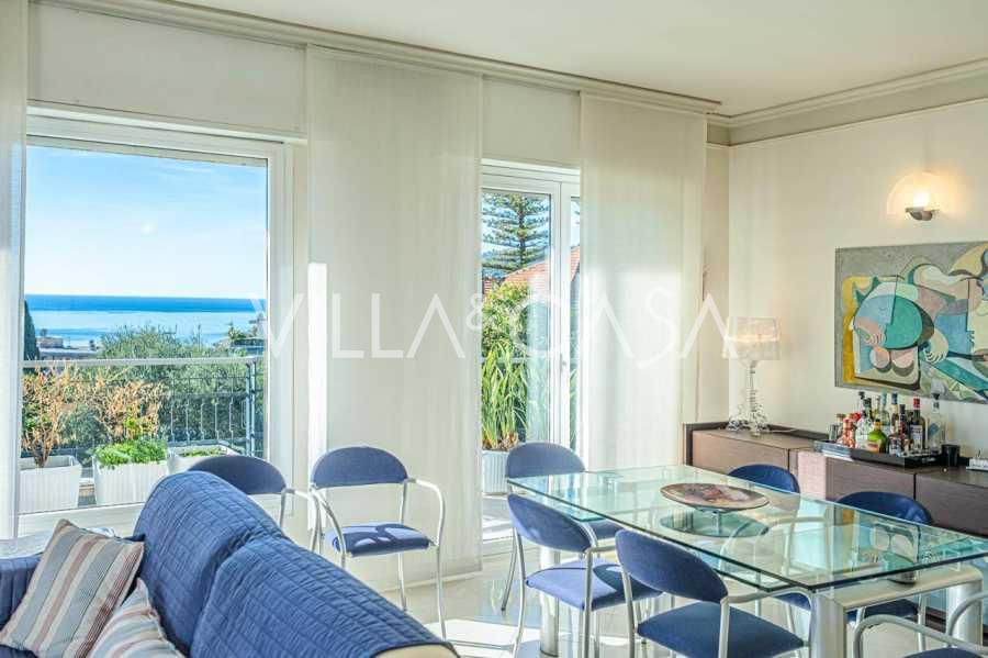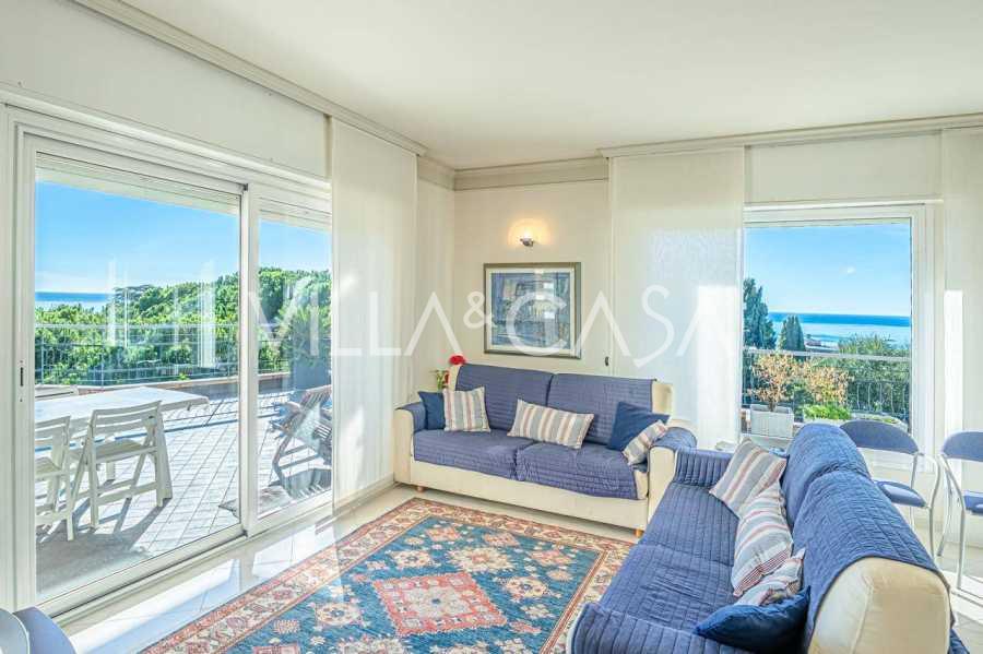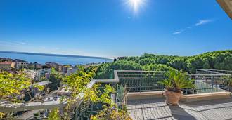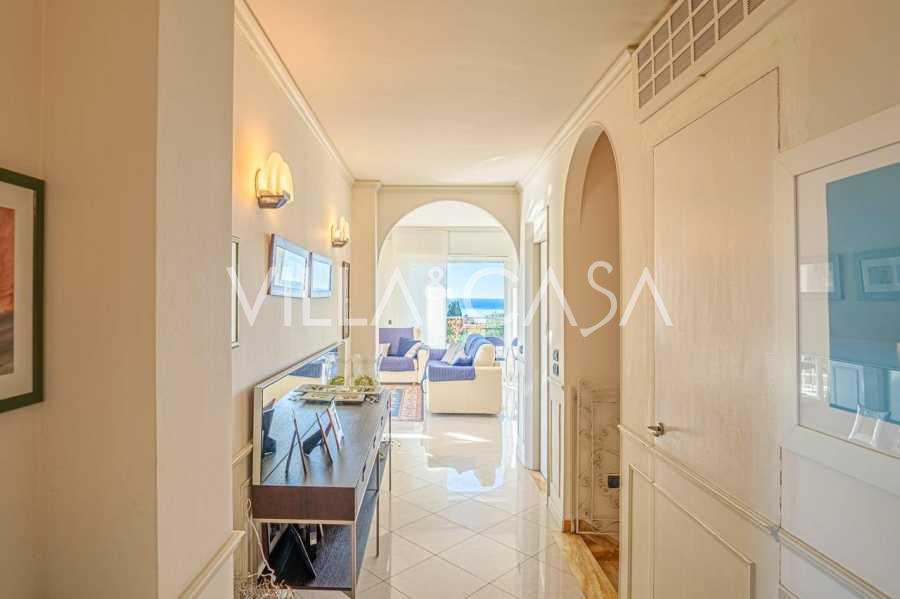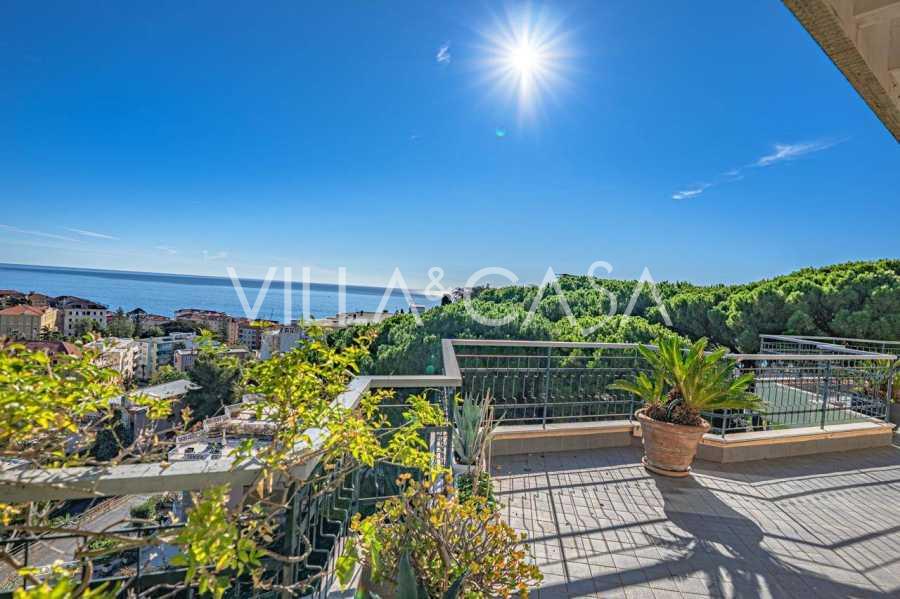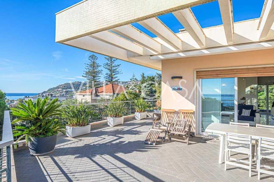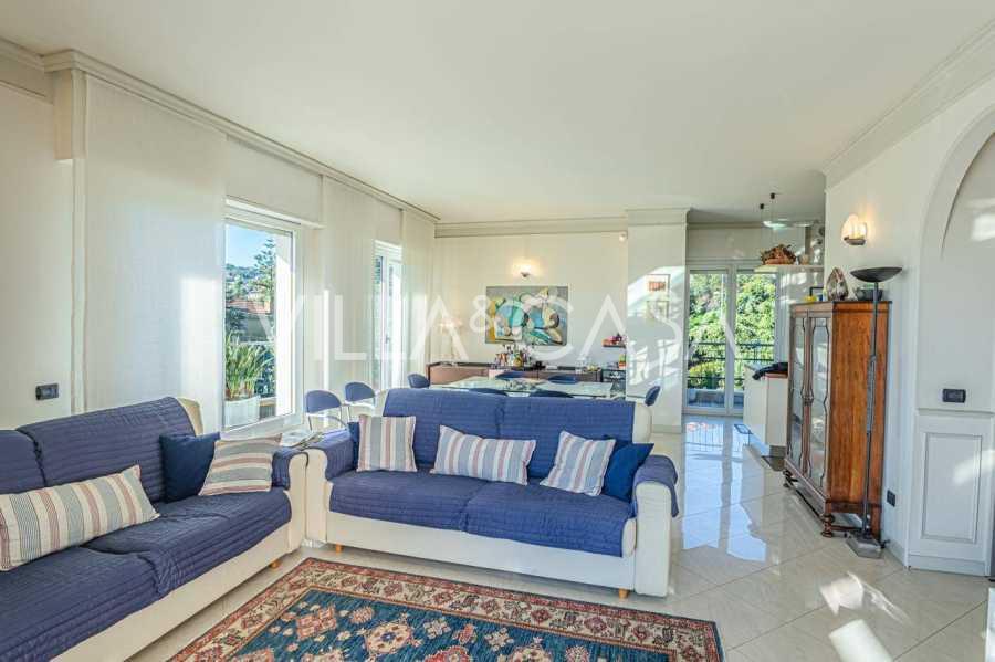 Sanremóban, mindössze 10 perc sétára a tengerparttól, eladó egy körülbelül 146 m²-es penthouse. Az apartman az 5. emeleten található egy liftes épületben, és a következőket tartalmazza: