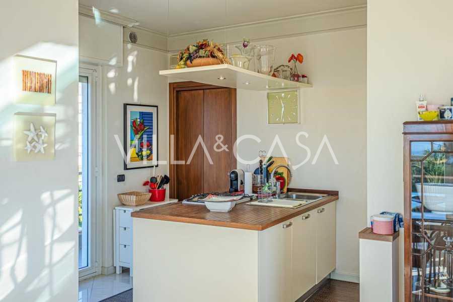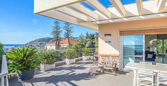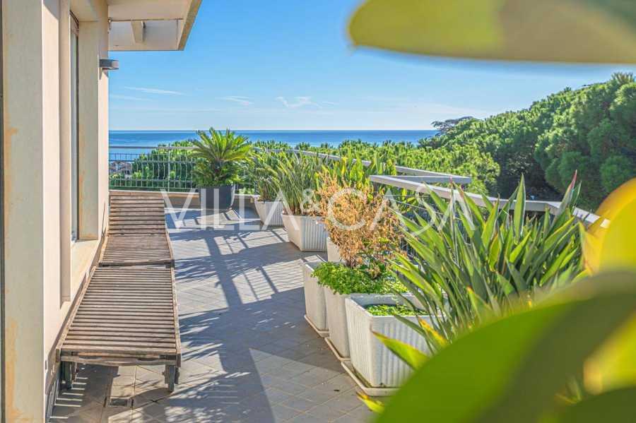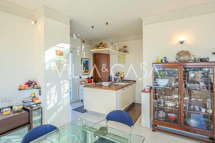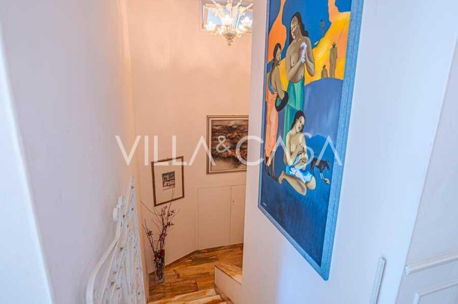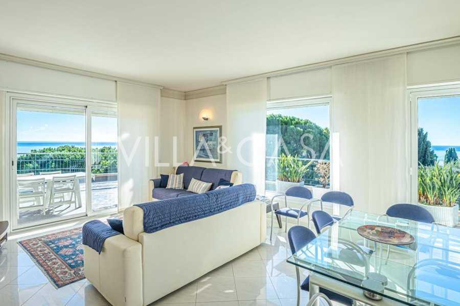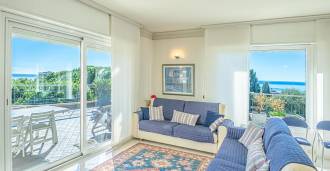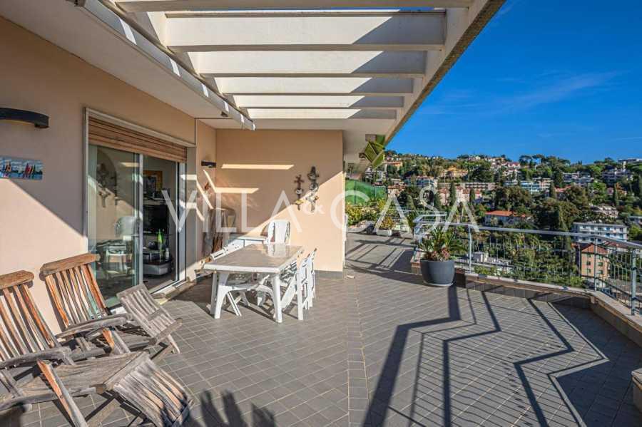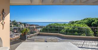Sanremóban, mindössze 10 perc sétára a tengerparttól, eladó egy körülbelül 146 m²-es penthouse. Az apartman az 5. emeleten található egy liftes épületben, és a következőket tartalmazza: