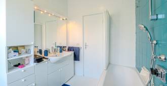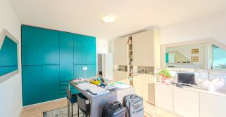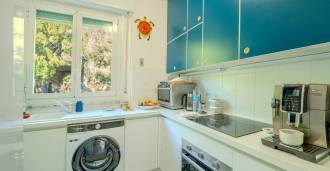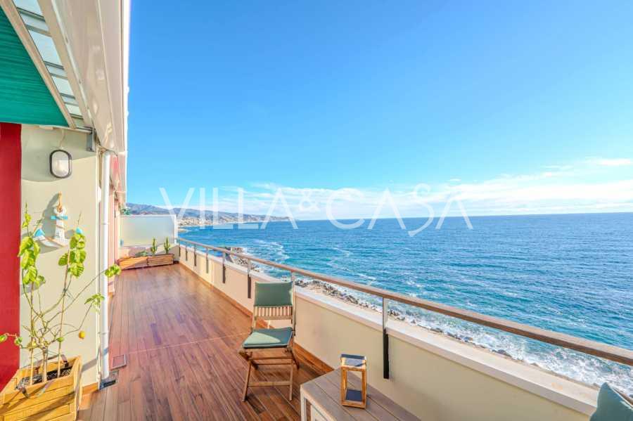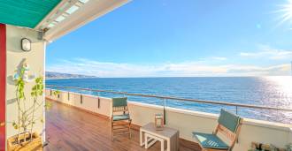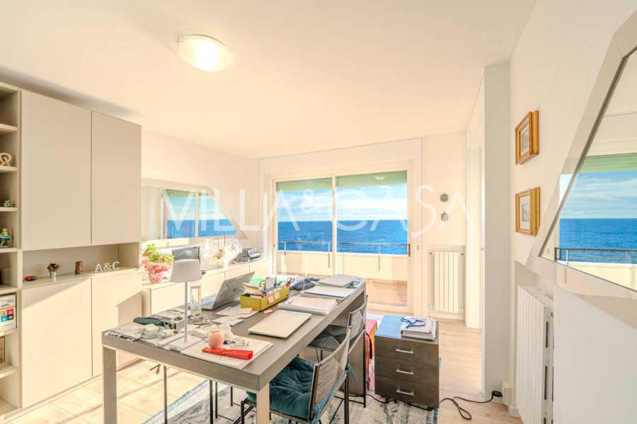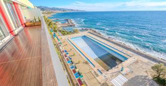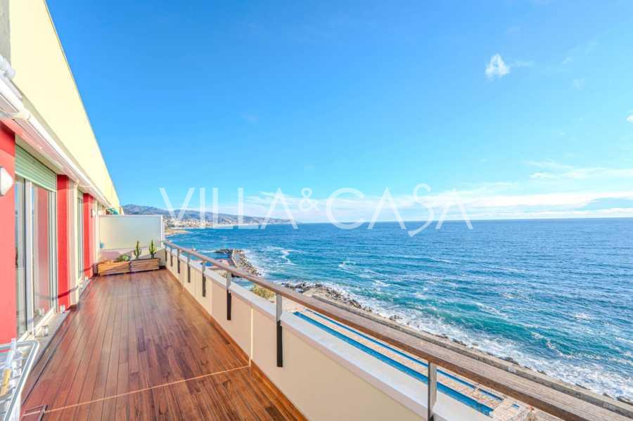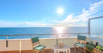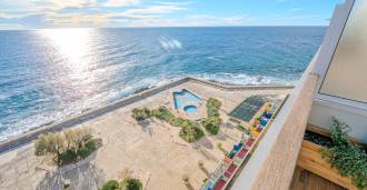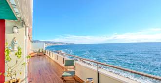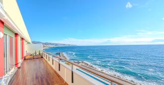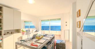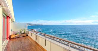 A tengerpart első sorában eladó egy penthouse nagy terasszal, amelynek területe 143 m² (123 m² lakótér + 20 m² garázs). Ez a gondozott és teljesen felújított penthouse 2023-ban újult meg, és az épület 5. emeletén található, ahol portaszolgálat is működik. A lakás délkeleti tájolású, és tágas terasszal rendelkezik, amely világos és otthonos légkört teremt.