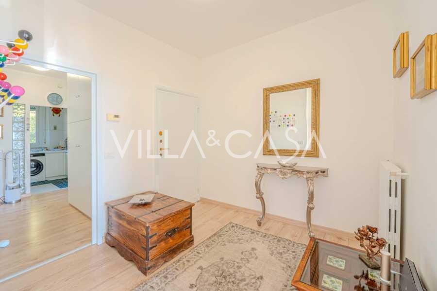 Az elrendezés magában foglal egy nappalit, dolgozószobát, fő hálószobát, második hálószobát vagy gyerekszobát, konyha-étkezőt, két ablakos fürdőszobát, előszobát és folyosót. Önálló fűtés, légkondicionáló beszerelésének lehetősége, 20 m²-es garázsdoboz 3,50 m magas mennyezettel és galéria lehetőséggel, tágas terasz a szabadban való pihenéshez. Pince nincs, de a garázsban tárolhatók dolgok. A közös költségek évente 2000 €.
