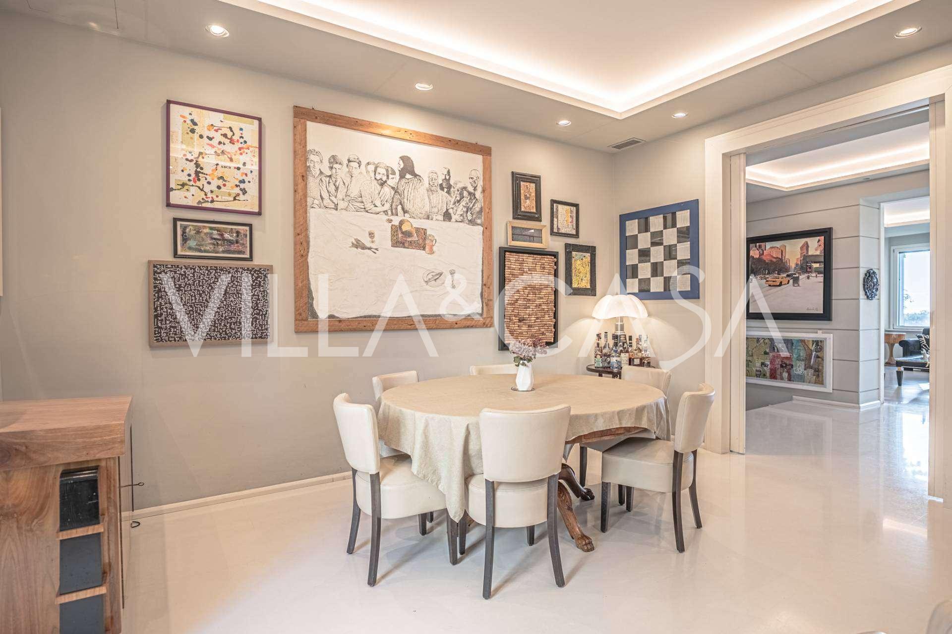 A belső tér tágas és világos helyiségekkel rendelkezik, amelyek a legmagasabb minőségű anyagokkal vannak befejezve, és modern integrált otthonvezérlő rendszerrel vannak felszerelve, amely lehetővé teszi az intelligens világítás, a padlófűtés és -hűtés, a légkondicionálás és a biztonság ellenőrzését egy összetett riasztórendszer segítségével.
