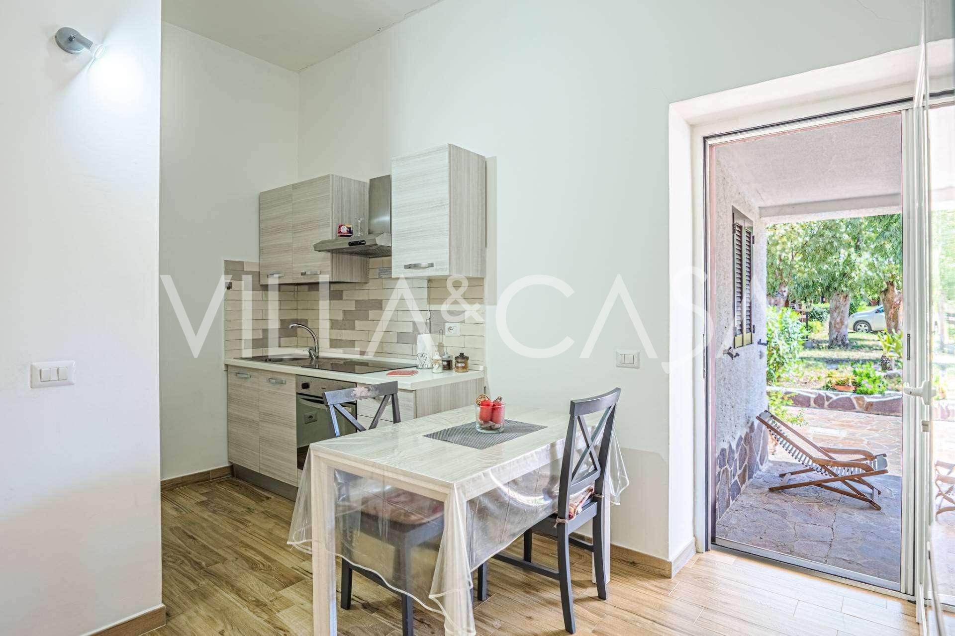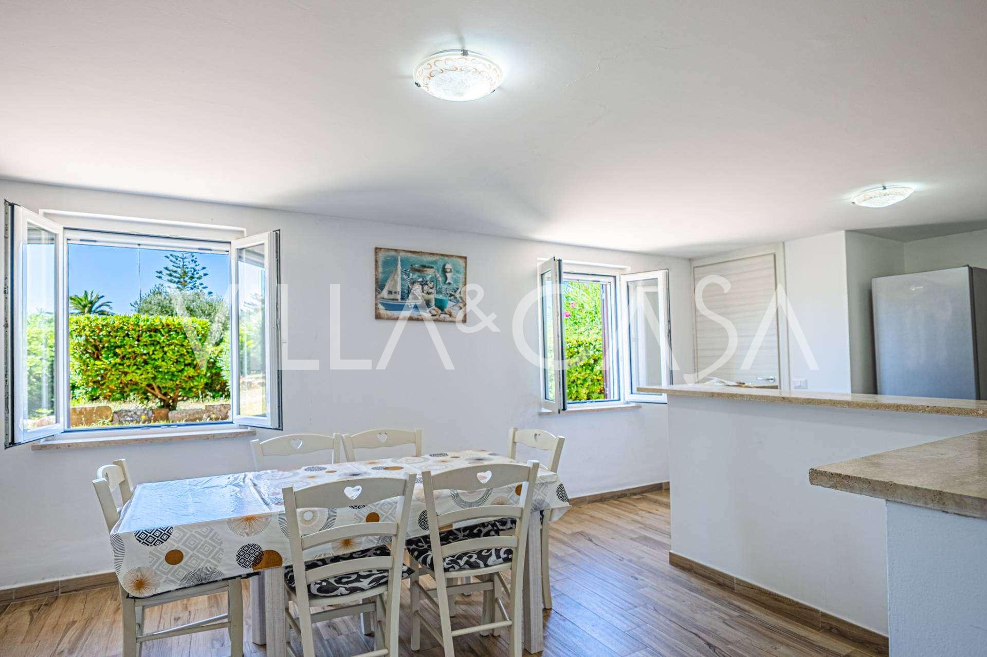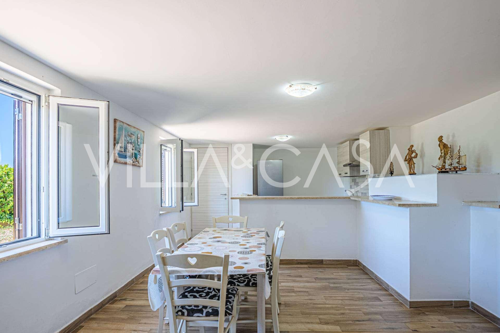 A rezidenciát kiegészítik a melléképületek: egy külön épület fürdőszobával, mini konyhával, fatüzelésű kemencével, mosodával és tárolóval, valamint egy független, körülbelül 24 négyzetméteres apartman saját hálószobával, fürdőszobával és mini konyhával. Ezt egy körülbelül 100 négyzetméteres, tetővel ellátott fa pavilon díszíti, ahonnan festői kilátás nyílik a tengerre. Az apartman magánéletet és kiváló benapozást biztosít, két bejárattal rendelkezik automata kapukkal, kifogástalan állapotban van, teljesen bútorozott és felszerelt légkondicionálóval és fotovoltaikus rendszerrel.