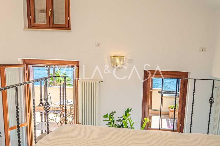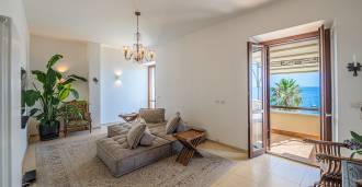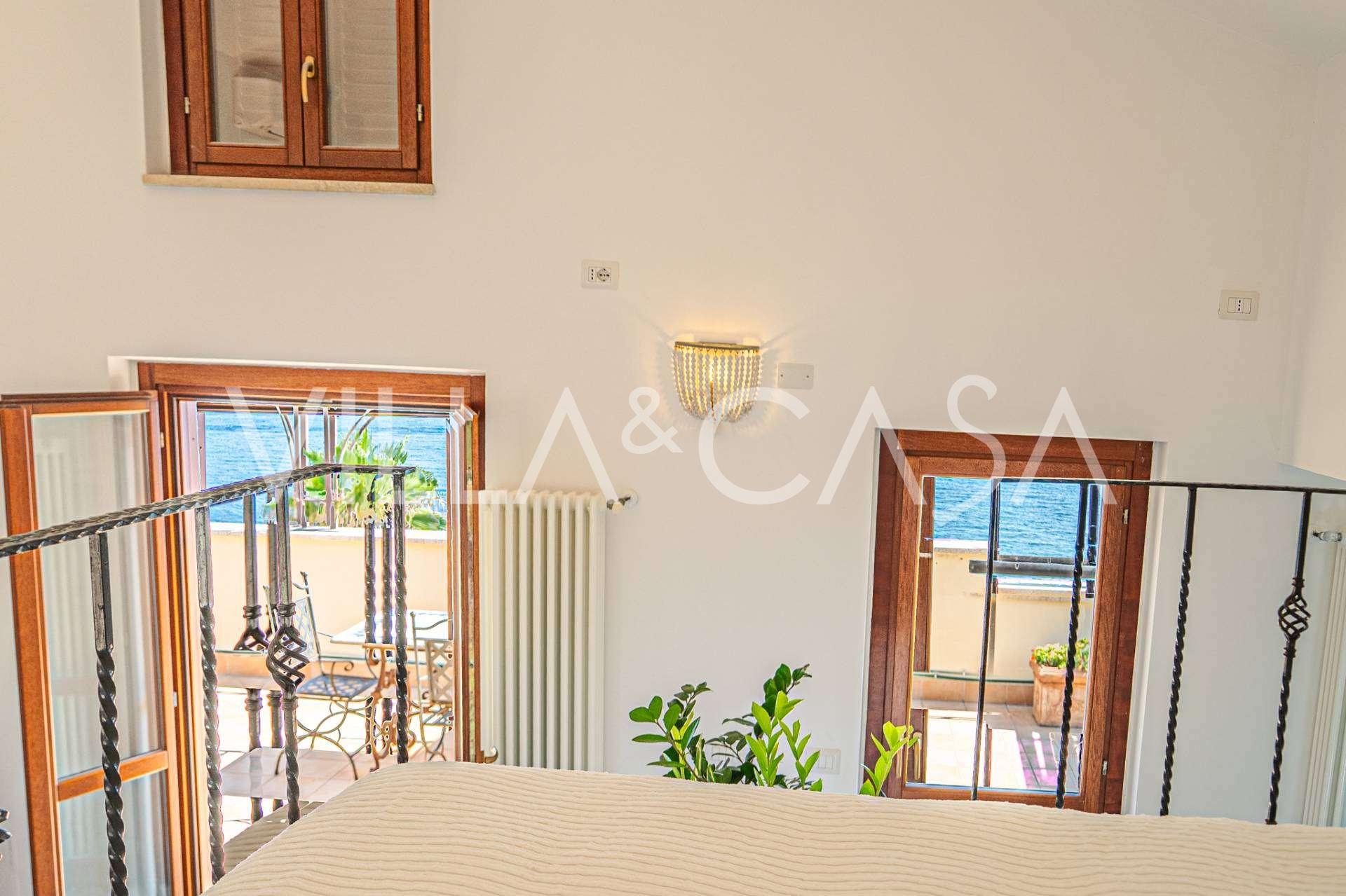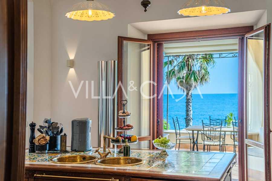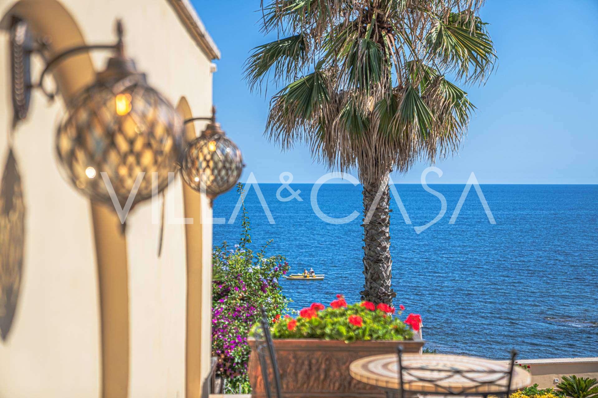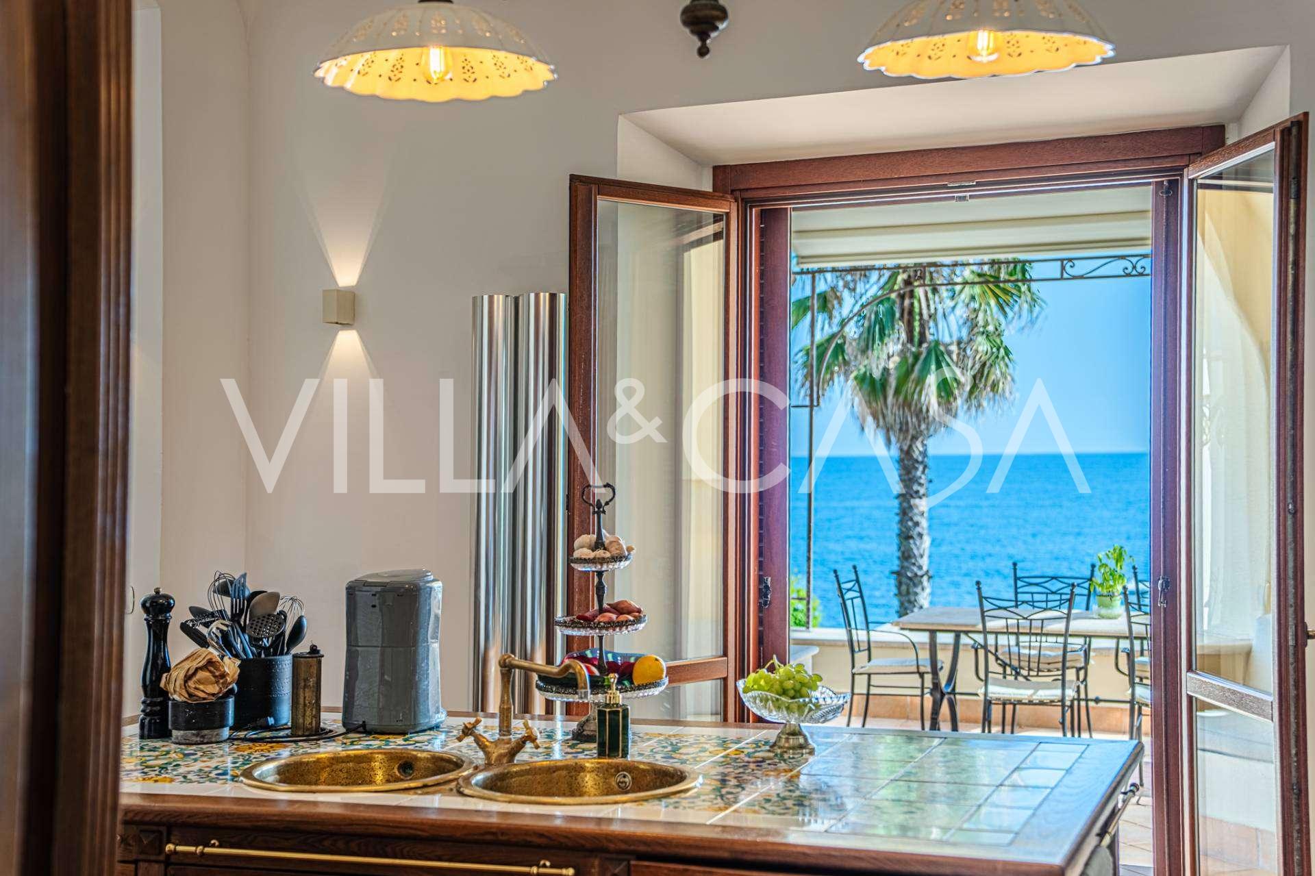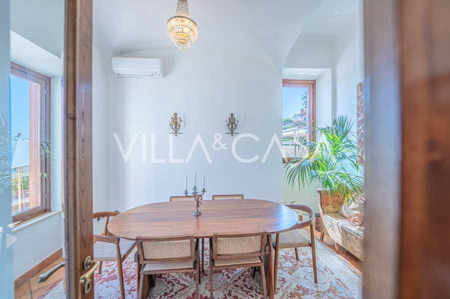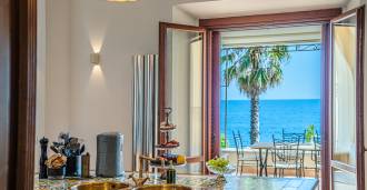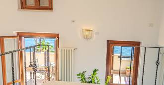 Az ablakok 180 fokos panorámás kilátást nyújtanak a tengerre, a kék horizont minden belső teret kitölt, és a széles panorámás teraszokig terjed. A belső terek, több mint három méteres magas mennyezettel, korabeli terrakotta padlóval, márvány lépcsővel és kandallóval, kifinomult, időtlen eleganciát sugároznak.