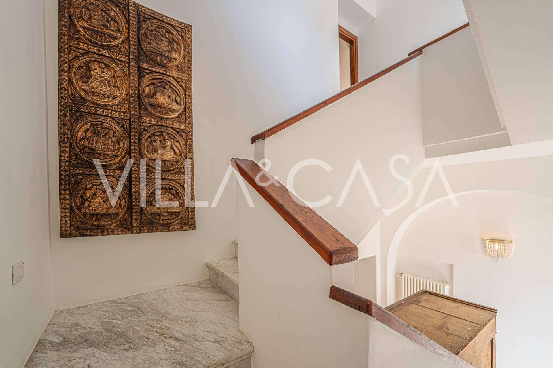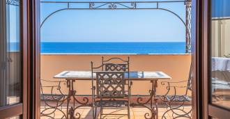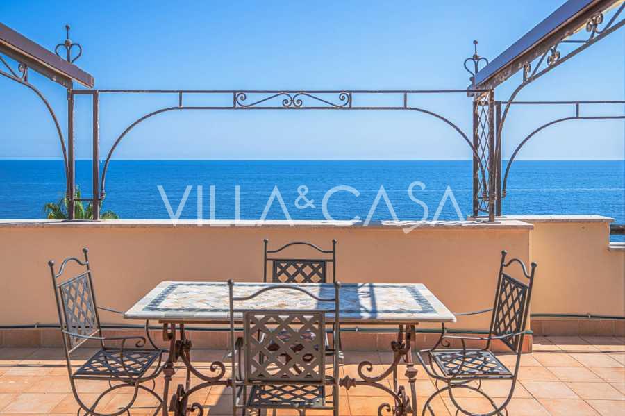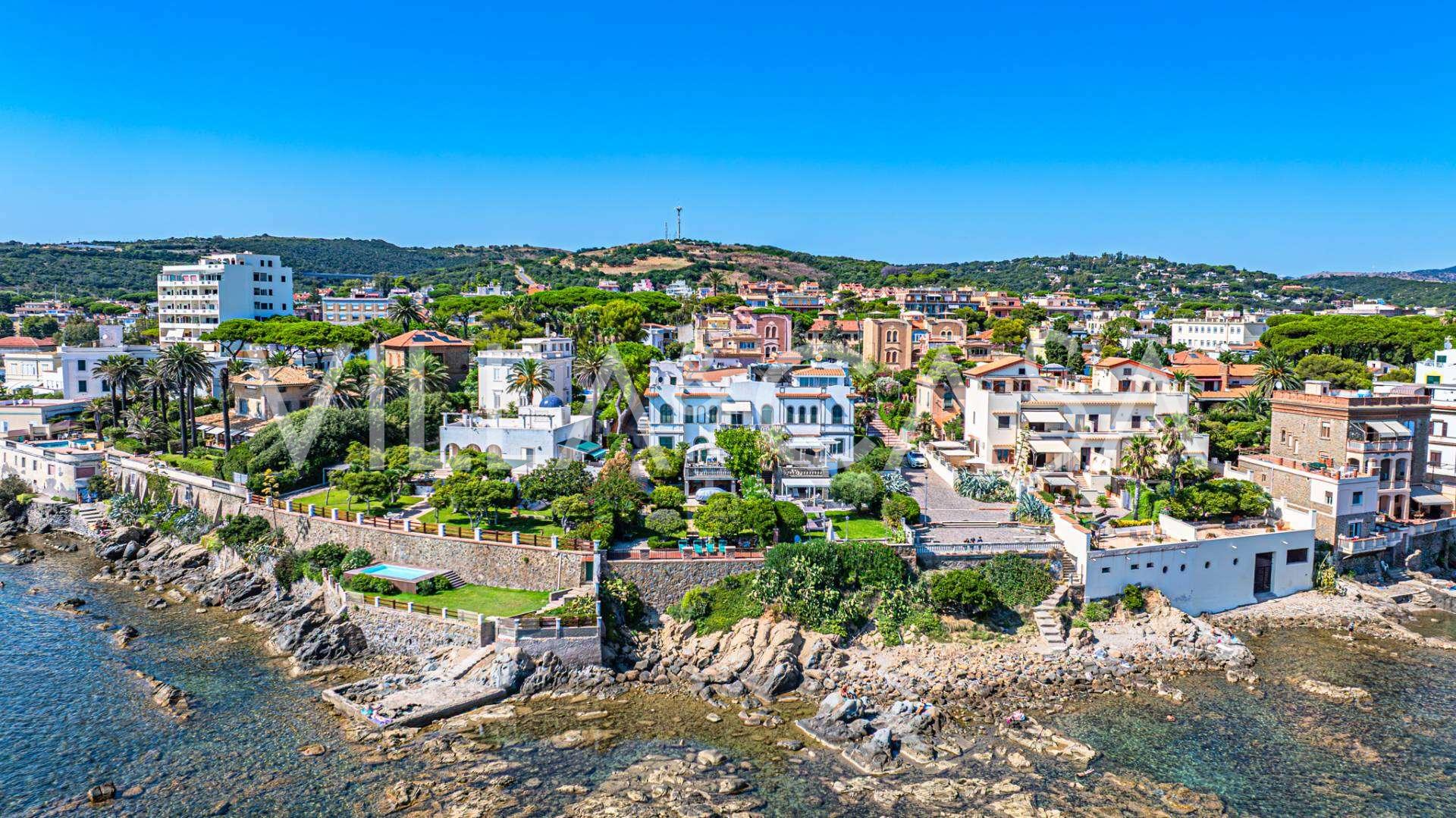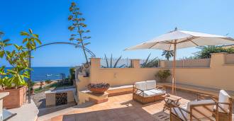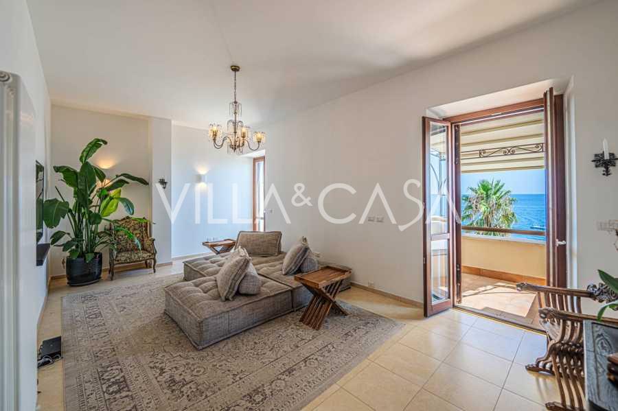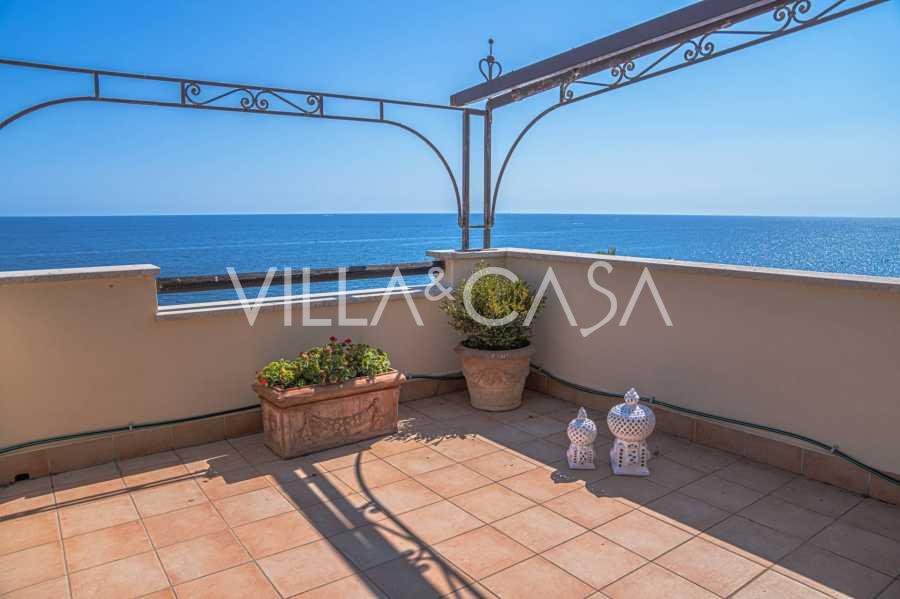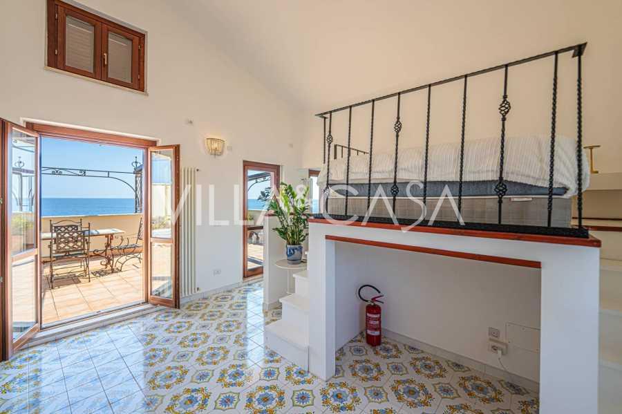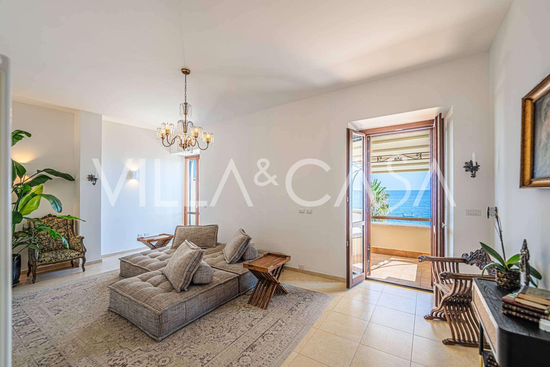 Az ablakok 180 fokos panorámás kilátást nyújtanak a tengerre, a kék horizont minden belső teret kitölt, és a széles panorámás teraszokig terjed. A belső terek, több mint három méteres magas mennyezettel, korabeli terrakotta padlóval, márvány lépcsővel és kandallóval, kifinomult, időtlen eleganciát sugároznak.