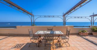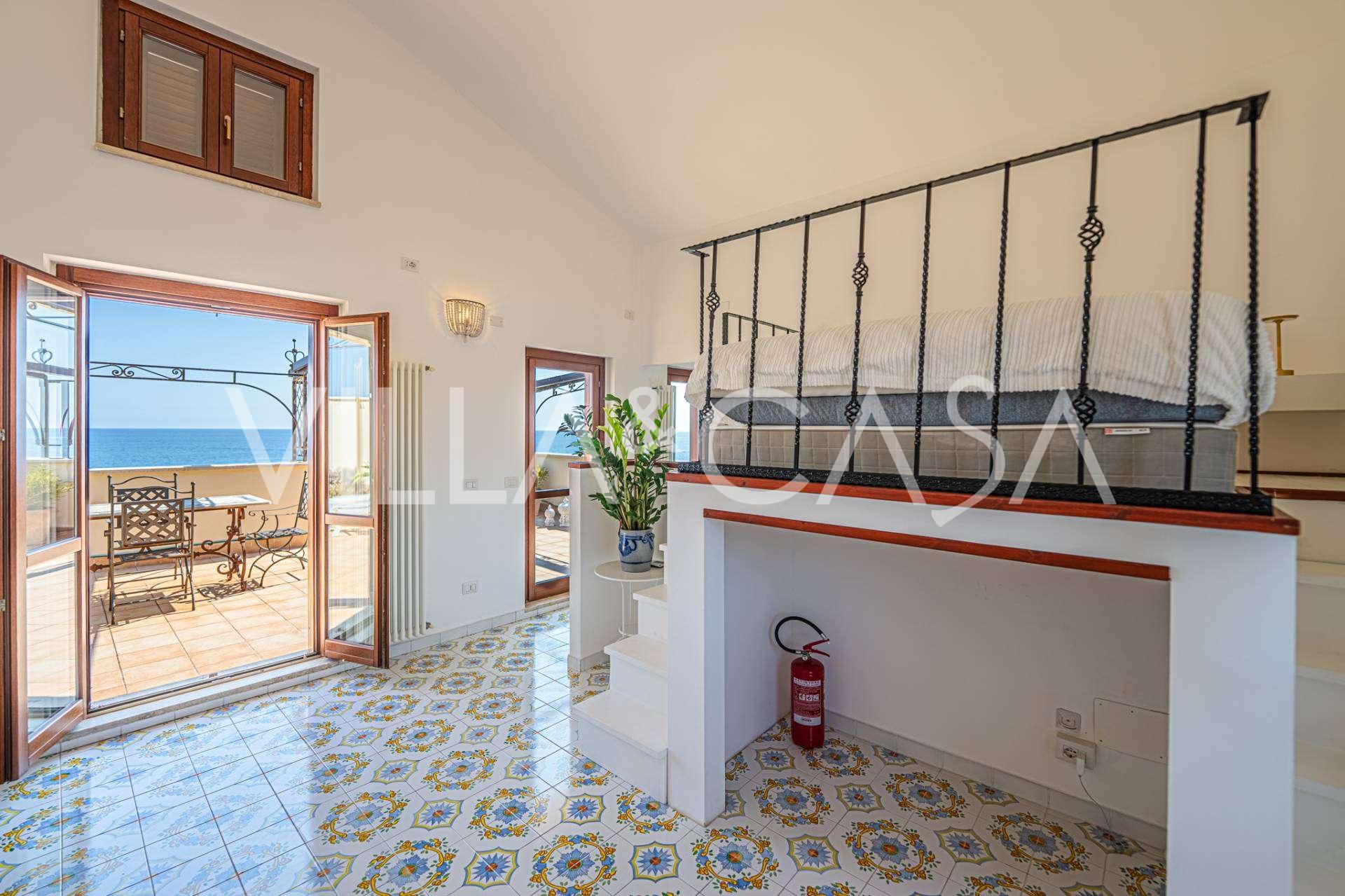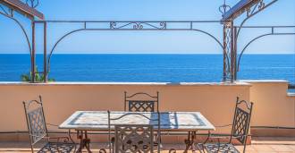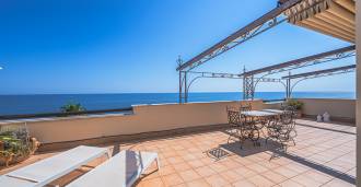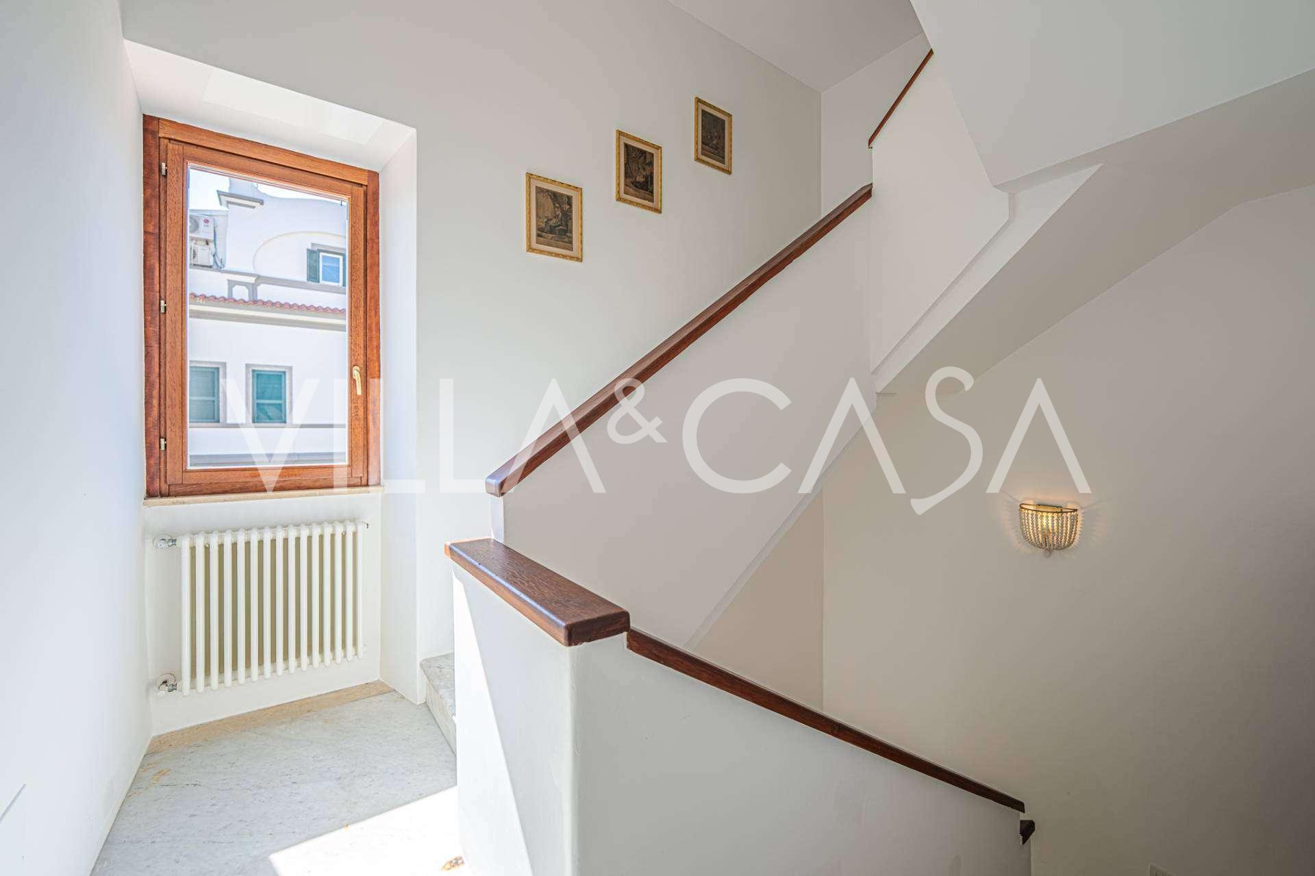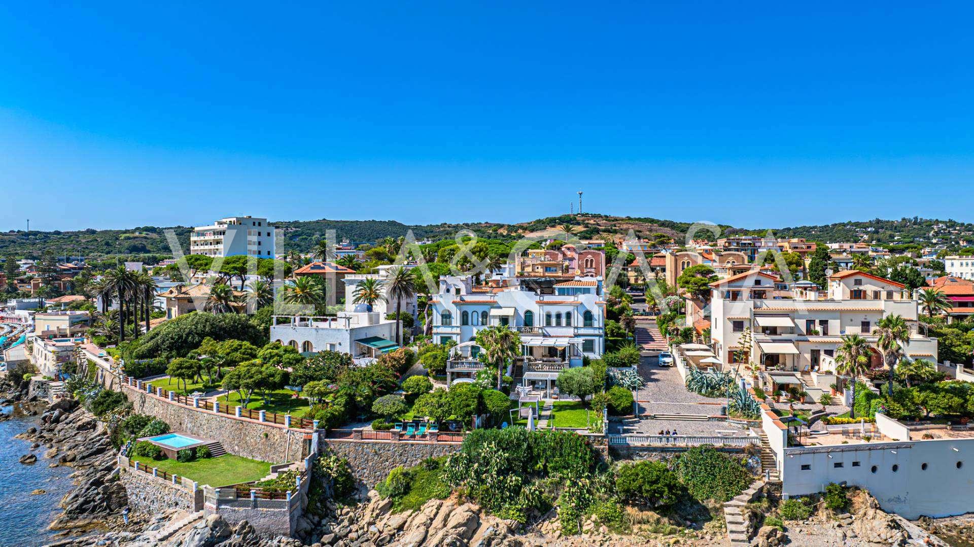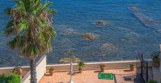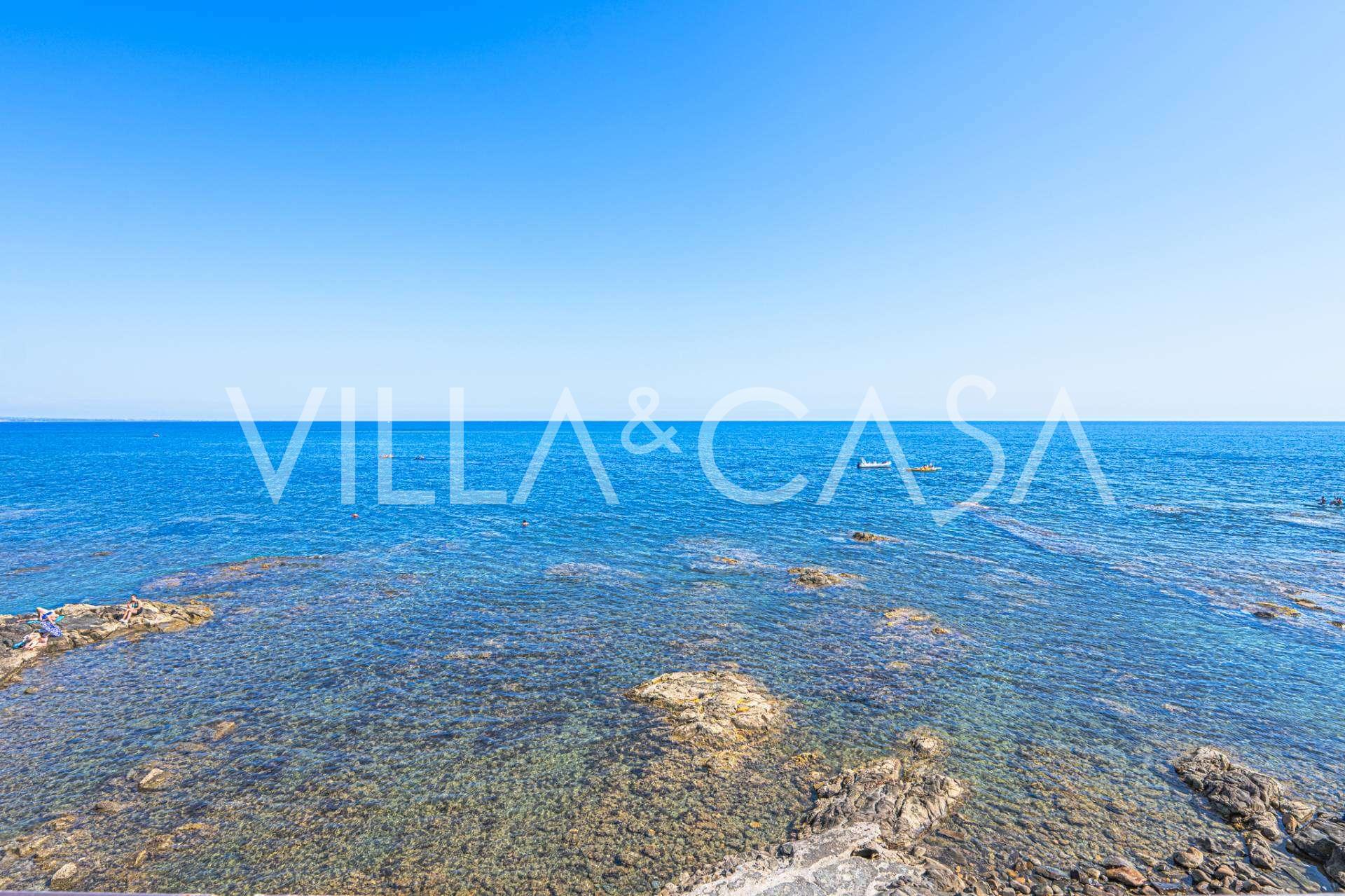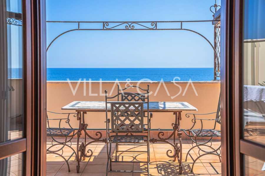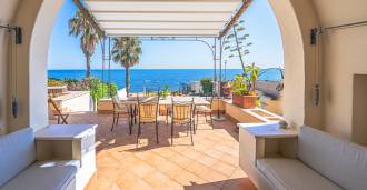 Az ablakok 180 fokos panorámás kilátást nyújtanak a tengerre, a kék horizont minden belső teret kitölt, és a széles panorámás teraszokig terjed. A belső terek, több mint három méteres magas mennyezettel, korabeli terrakotta padlóval, márvány lépcsővel és kandallóval, kifinomult, időtlen eleganciát sugároznak.
