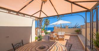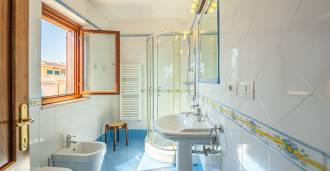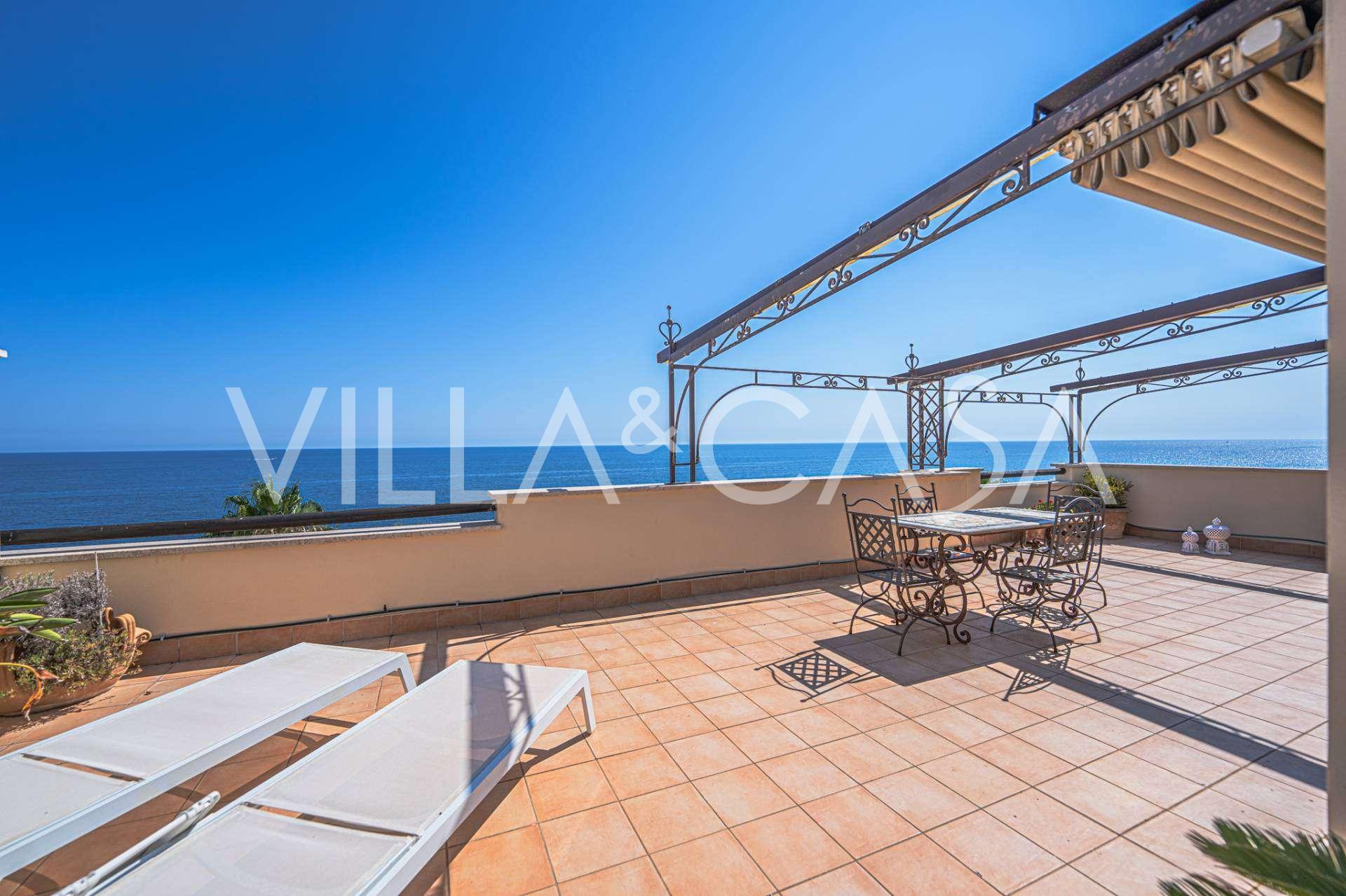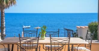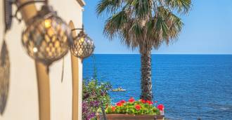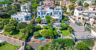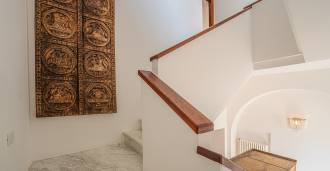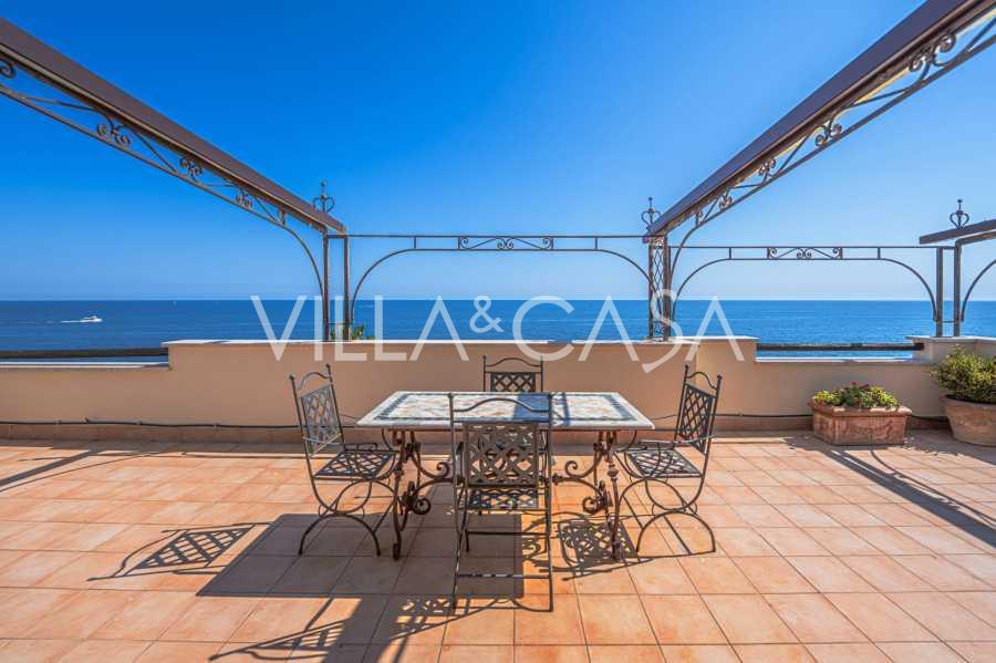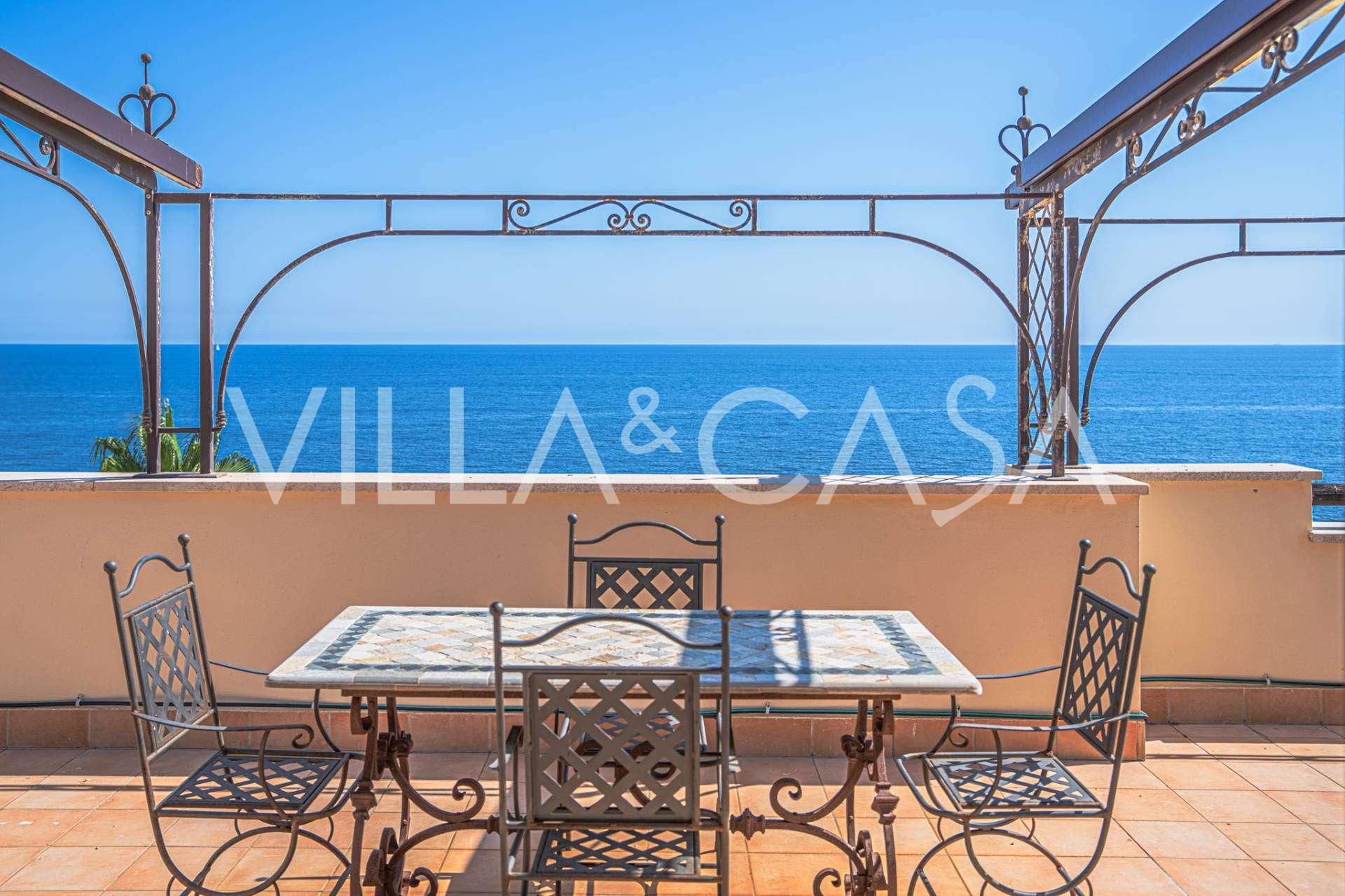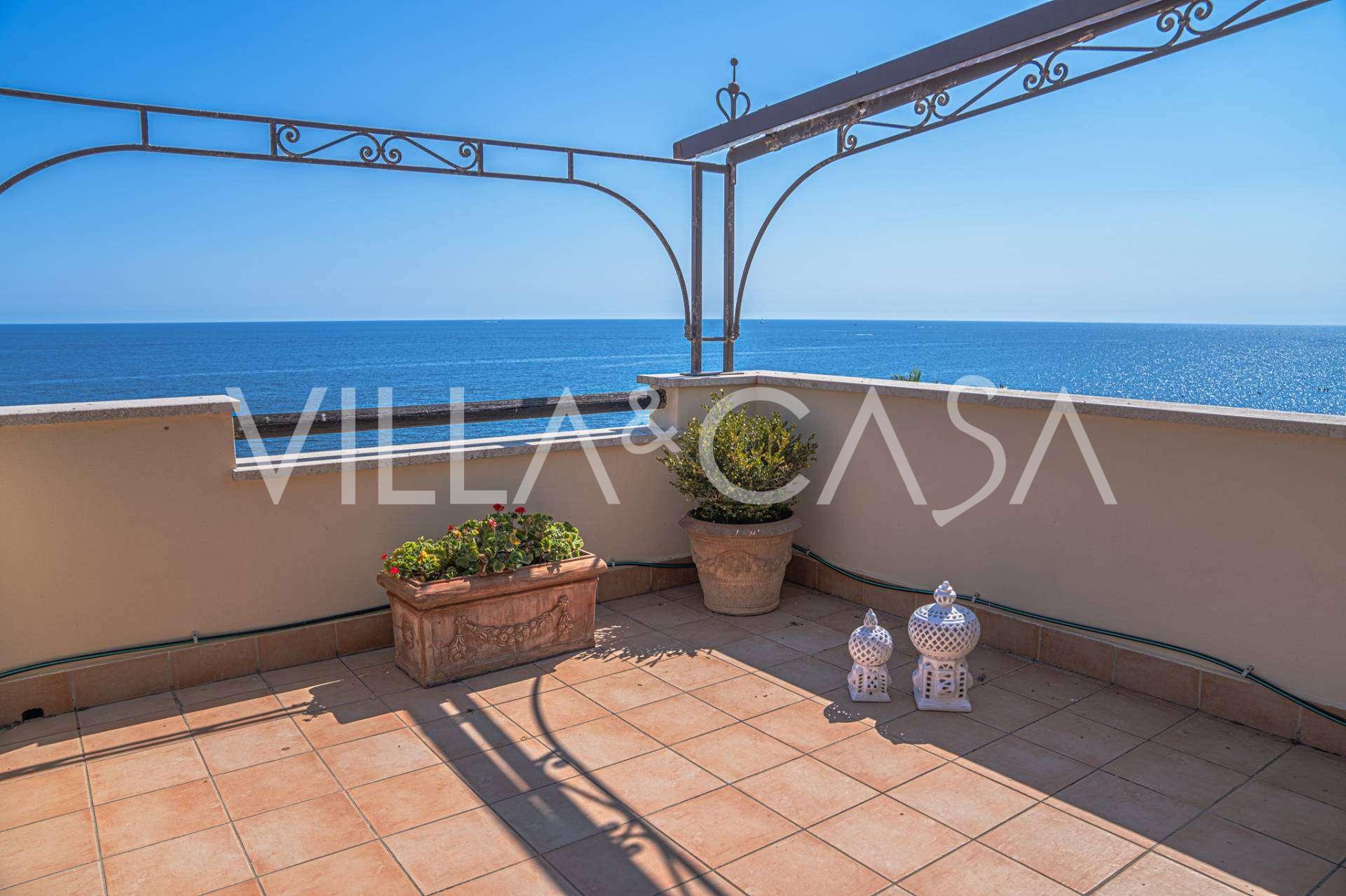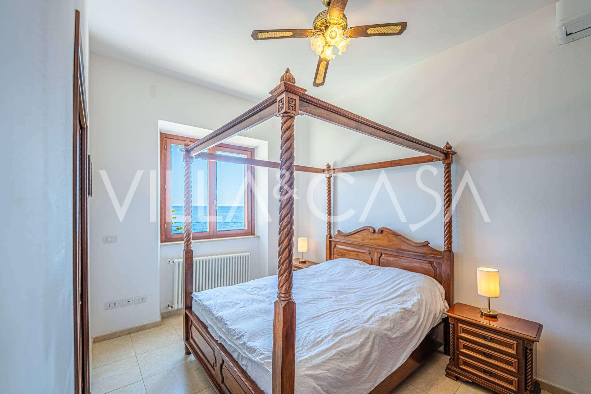 Az ablakok 180 fokos panorámás kilátást nyújtanak a tengerre, a kék horizont minden belső teret kitölt, és a széles panorámás teraszokig terjed. A belső terek, több mint három méteres magas mennyezettel, korabeli terrakotta padlóval, márvány lépcsővel és kandallóval, kifinomult, időtlen eleganciát sugároznak.