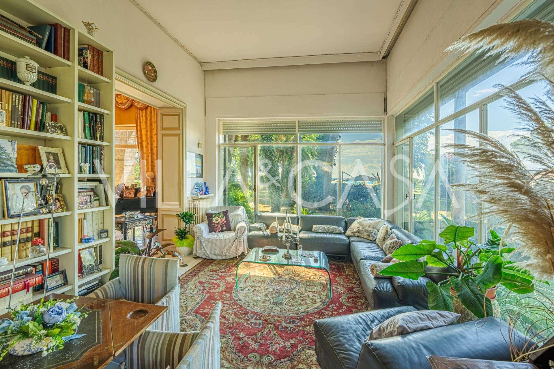 Eladó egy stílusos, angol stílusban épült villa Diano Marina első tengerparti vonalában, amely körülbelül 628 m2 területű, és négy szinten helyezkedik el. Közvetlen kijárattal rendelkezik a tengerhez és a homokos strandhoz. A villát egy körülbelül 5000 m2-es park veszi körül, évszázados mediterrán fenyőkkel.