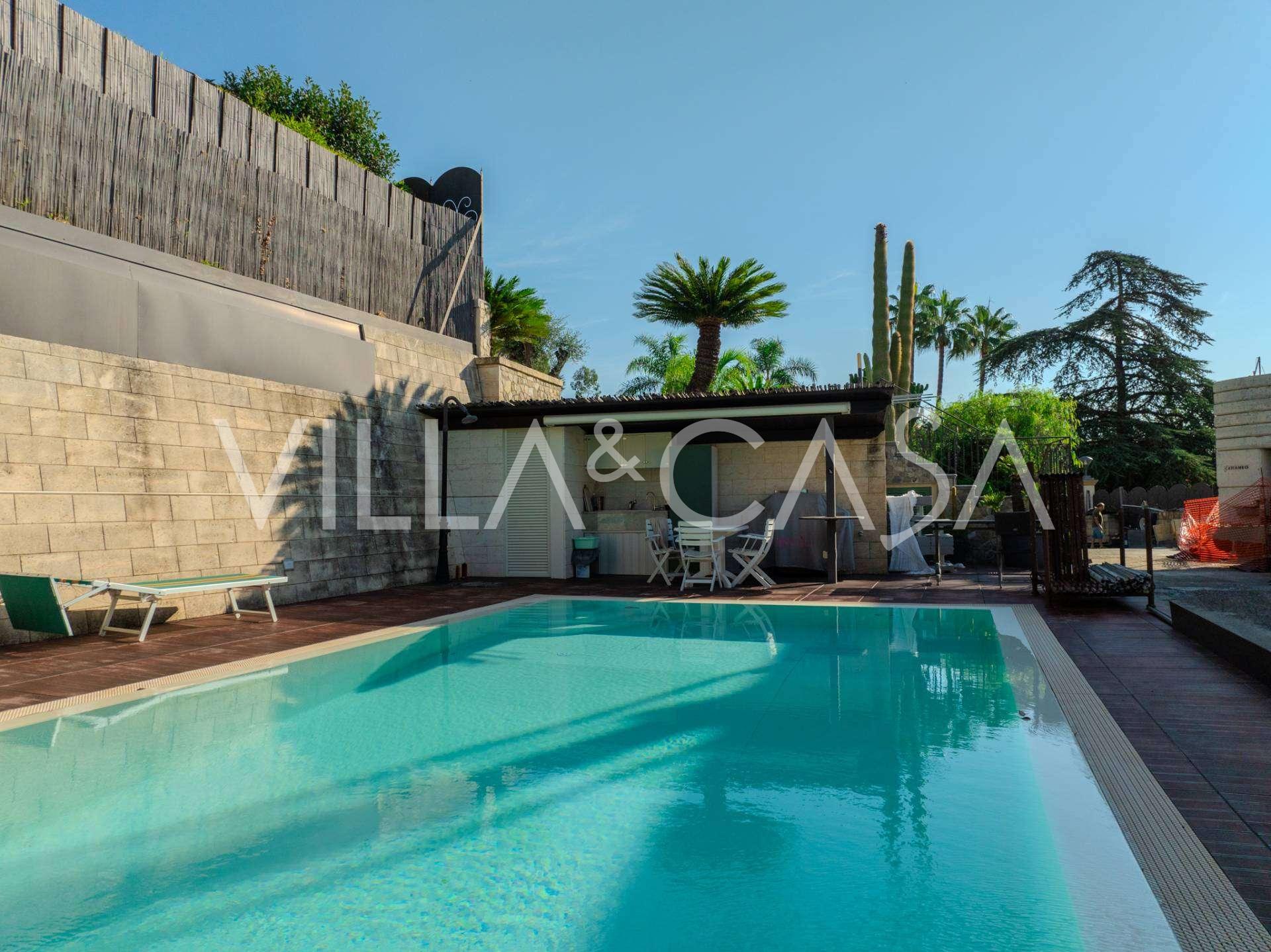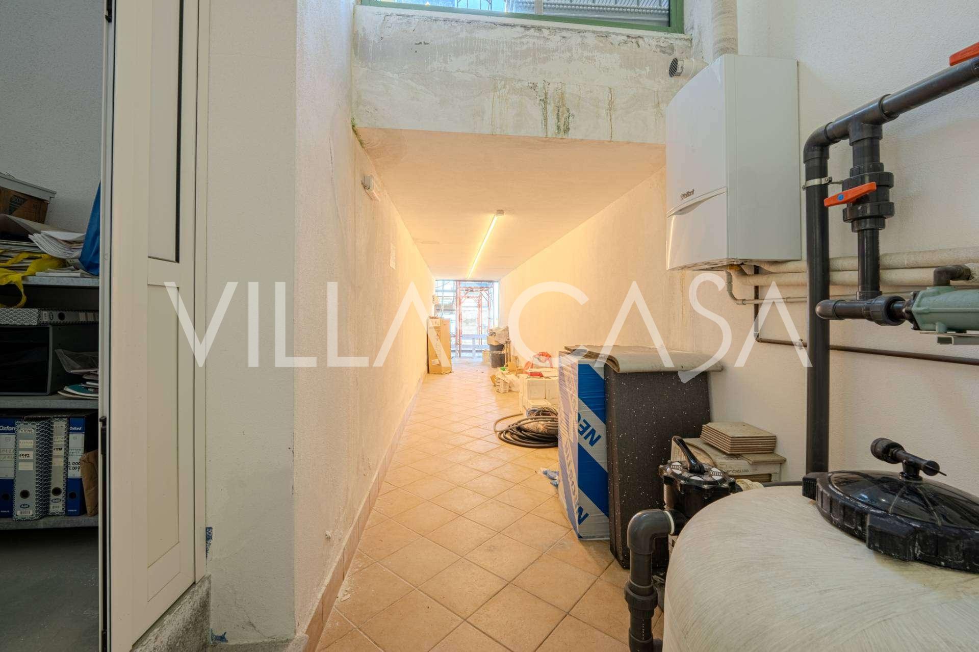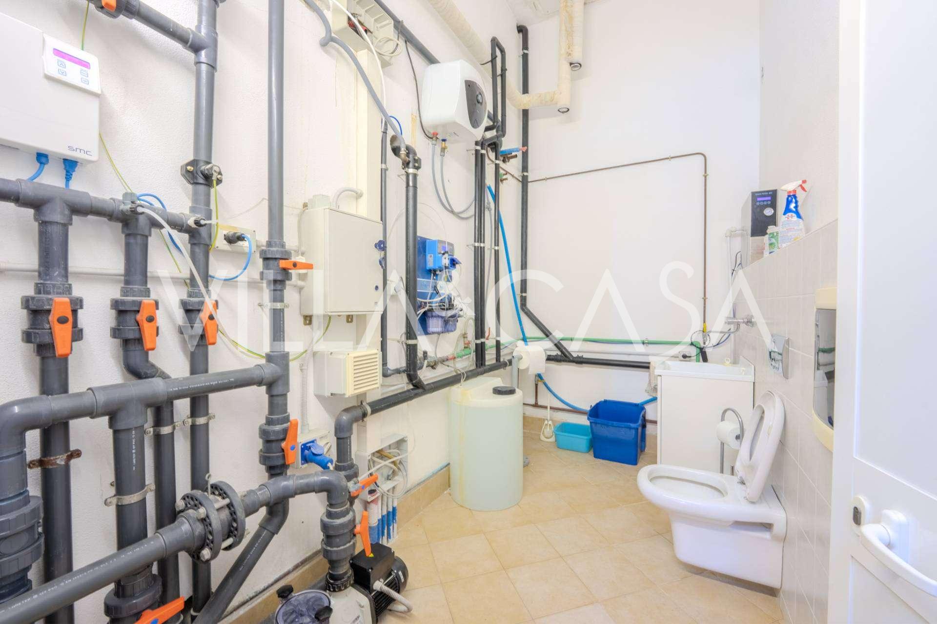 Önálló fűtési rendszer. Nagy garázs 4 autó számára, felszerelt edzőterem. A telken van egy medence nyári konyhával, grillező zóna, kert és parkolóhelyek autók számára. A telken továbbá kialakítható egy másik zárt pihenőhely is. A telek területe körülbelül 2000 m2.
