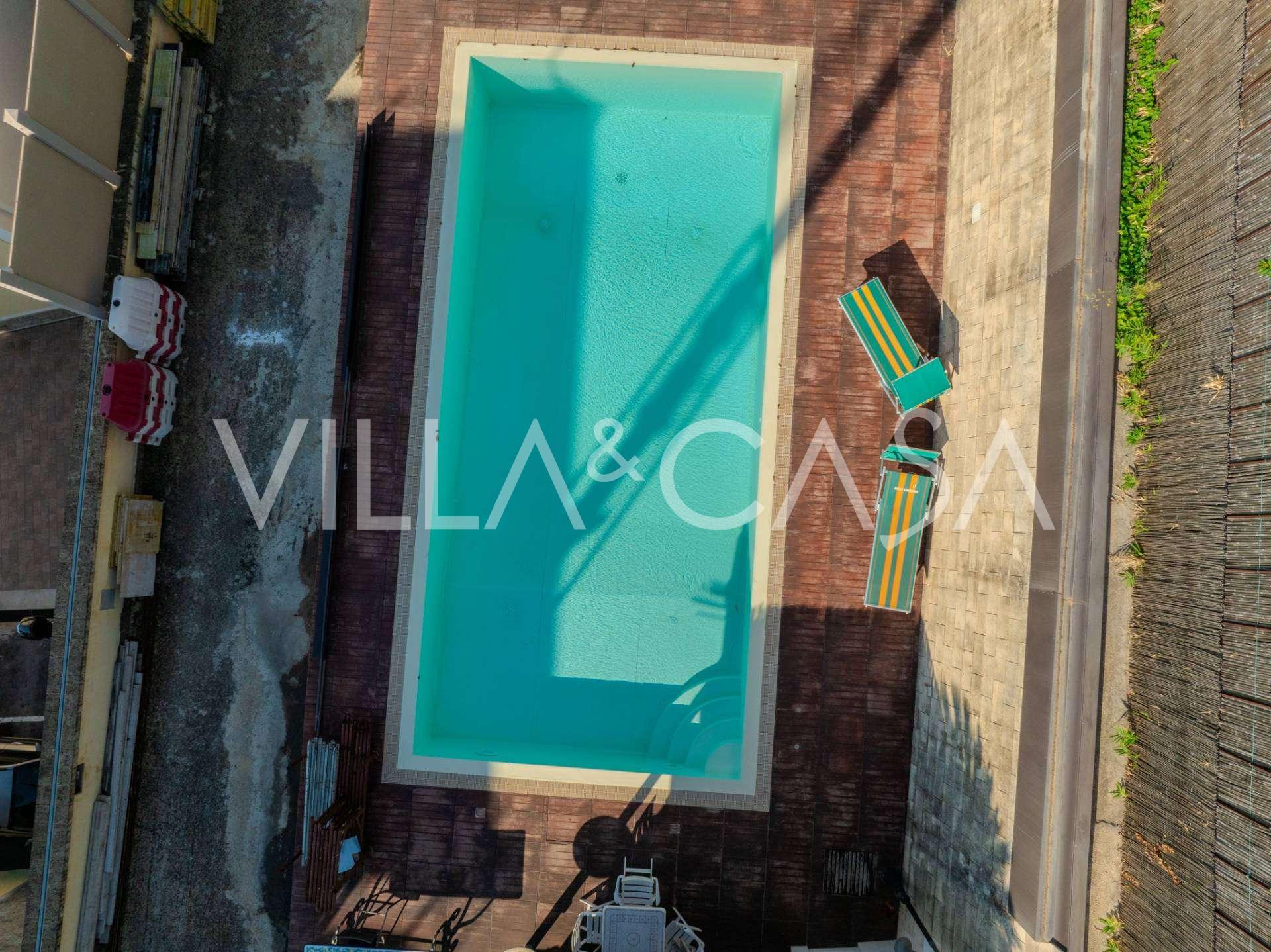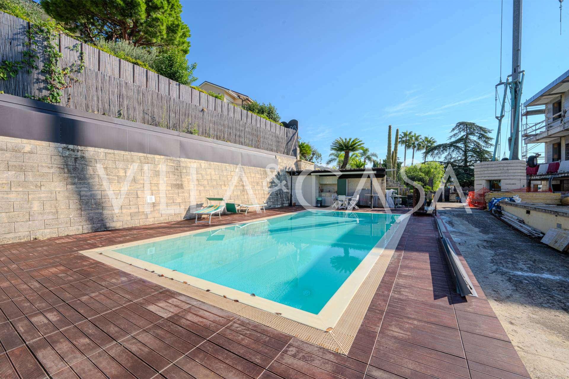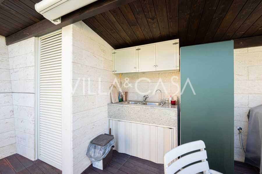 Önálló fűtési rendszer. Nagy garázs 4 autó számára, felszerelt edzőterem. A telken van egy medence nyári konyhával, grillező zóna, kert és parkolóhelyek autók számára. A telken továbbá kialakítható egy másik zárt pihenőhely is. A telek területe körülbelül 2000 m2.