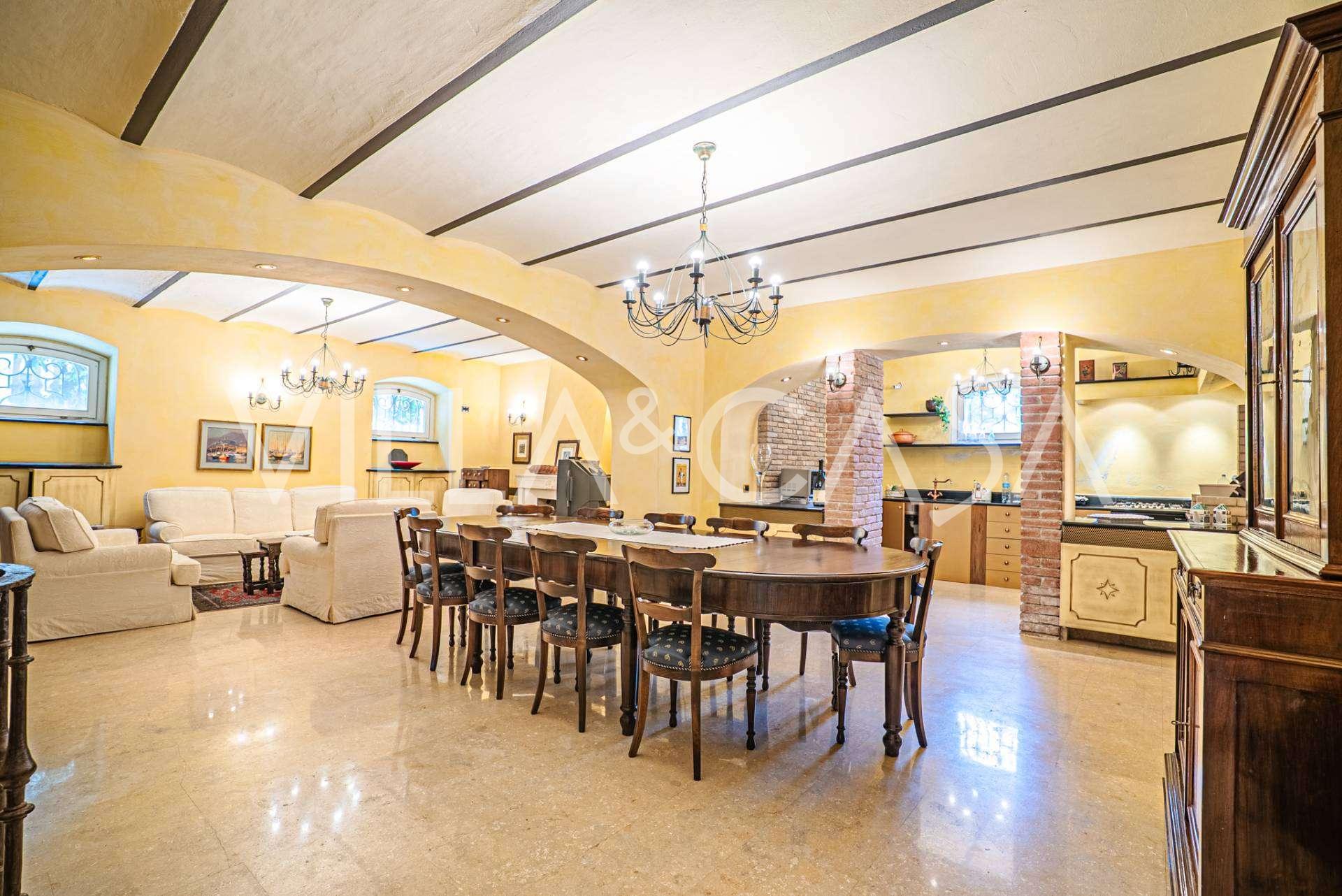 Ez a presztízsű rezidencia körülbelül 2000 m²-es területen helyezkedik el, 6 szinten, amelyek közül kettő a föld alatt található. Az összes emeletet fehér márványból készült csigalépcső köti össze elegáns kovácsoltvas korlátokkal, valamint lift is rendelkezésre áll, amely kényelmes közlekedést biztosít a szintek között. A belső terek fényárban úsznak a kézzel készített ólomüveges magas ablakoknak köszönhetően, a házban megőrizték a régi kandallókat az Albisoából származó mesterek által eredeti minták alapján készített terrakotta kéményekkel.
