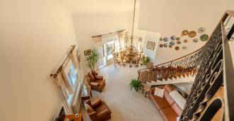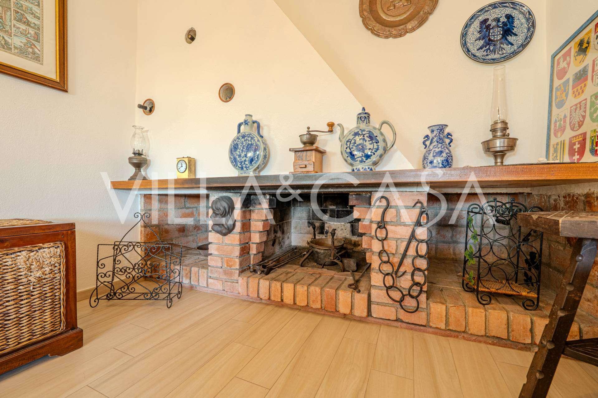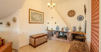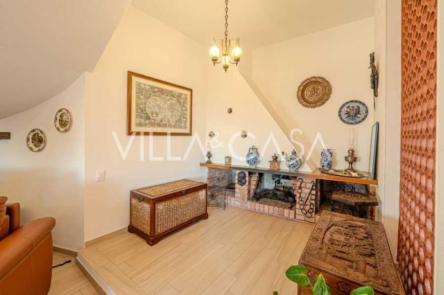 A második szinten: nagy nappali kandallóval és tengerre néző kilátással, amelyből kijárat van a kertbe és az erkélyre. A konyha szintén tengerre néző. Fürdőszoba.