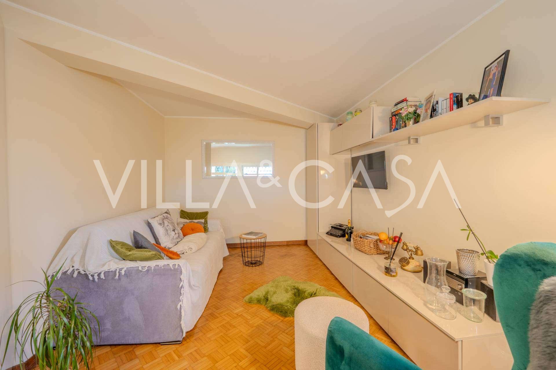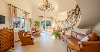 Az ár tartalmazza a garázst. Kert körülbelül 300 m2-es. A ház mellett van egy kis épület, amelynek összterülete körülbelül 30 m2, ára 65 000 euró, és lakóhelyként bérbe adható. A villa kiváló állapotban van, önálló fűtéssel. Ezenkívül külön megvásárolható egy 60 m2-es garázs 120 000 euróért.